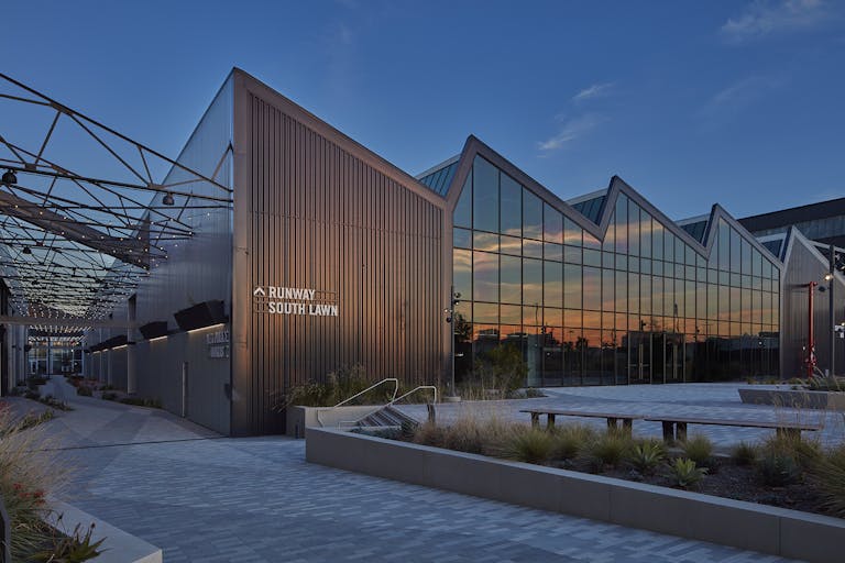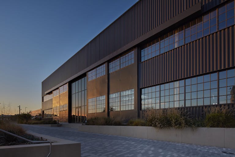 The expansive site involved the redevelopment of Northrop Grumman’s decommissioned aerospace manufacturing facility. Originally the site held one building but it was split into three, with an added courtyard and breezeway in between and a newly constructed park.
