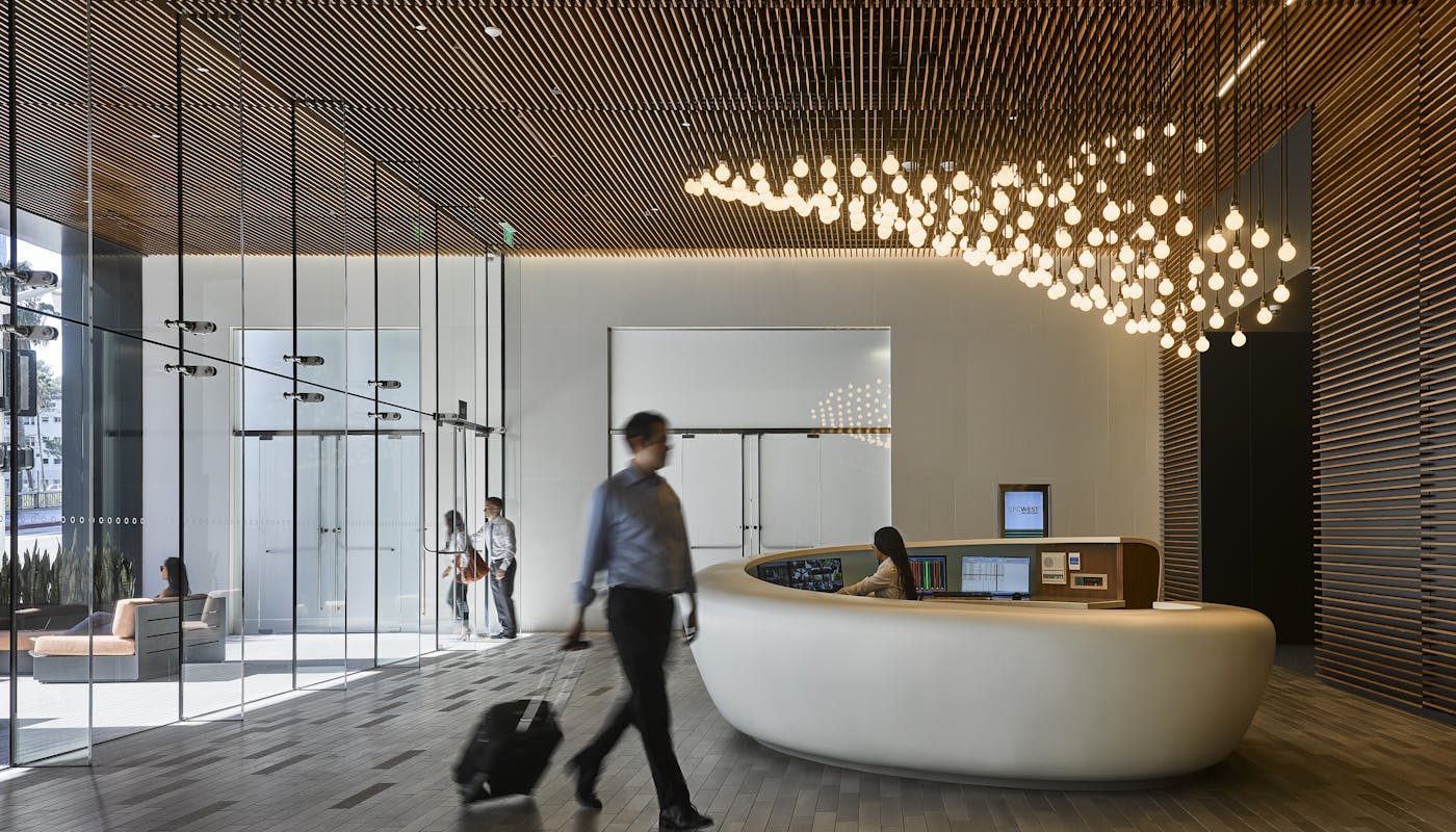 Managed by LPC West, the NineFifteen Wilshire building in downtown LA offers striking views and upscale amenities for tenants.