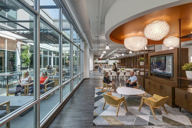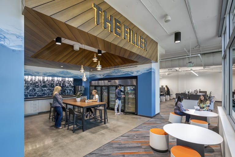 Each of the three floors were opened with full height ceilings, specialty lighting installations and high end materials that incorporate elements of their namesake and mission. Along with increased office and meeting rooms, several expanded corridors and living room inspired gathering spaces contribute to the family like atmosphere and allows teams to easily convene.