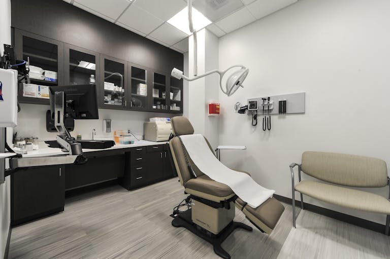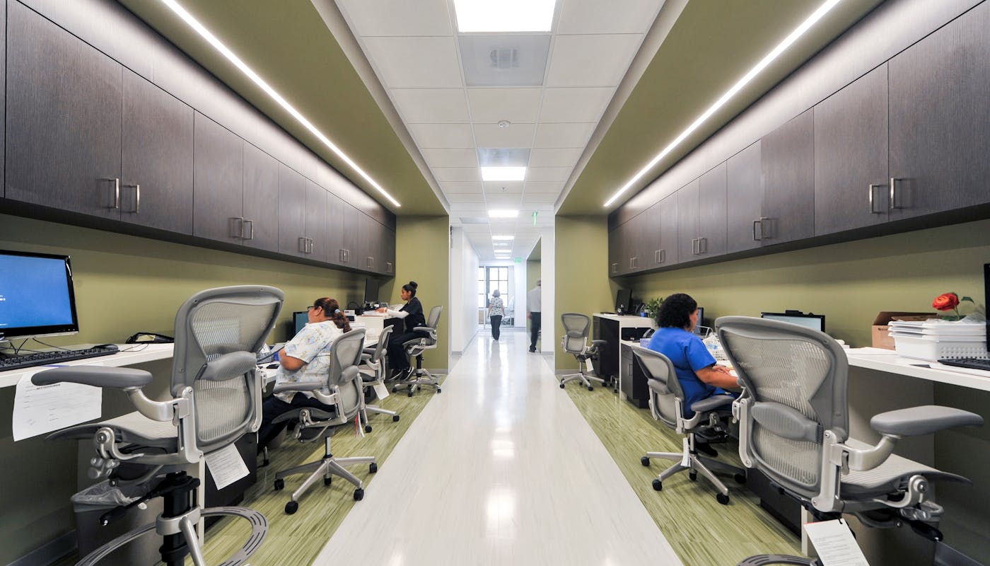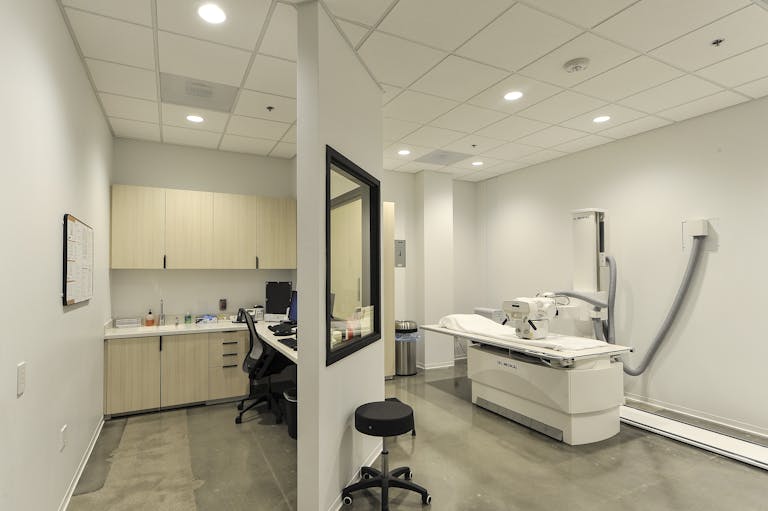 The patient exam rooms, waiting areas, nursing stations, labs and physician work areas are each grouped to create collaborative working pods aimed at efficiency and increasing patient health outcomes. Finishes in the suite include natural wood features, full height glass walls, three form panels and the use of skylights for plenty of natural light to fill the space. The Huntington Beach location includes a clinic, urgent care, and imaging center. Within the clinic are procedure and exam rooms, nurse stations, blood draw and lab space. The Imaging Center has its own separate waiting area and includes services for MRI, X-Ray, CT Scan, and Ultra Sound tests.