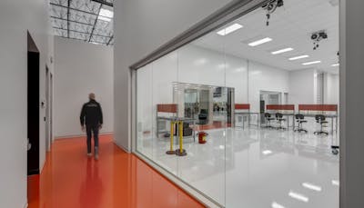 Along with the sleek design which incorporates Rocket Lab's visual identity, the photon lab included the installation of specialty equipment serviced by MEP infrastructure including liquid nitrogen, process gases and condensed water piping. The lab is outfitted with a HEPA filtration system and meets ISO 8 clean room standards.