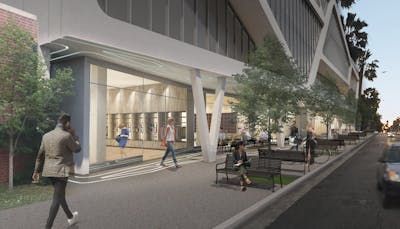 The 92,000 sf mixed-use building will feature four floors with the ground floor offering space for retail and restaurant tenants. Three floors of subterranean parking will be constructed with 231 capacity.