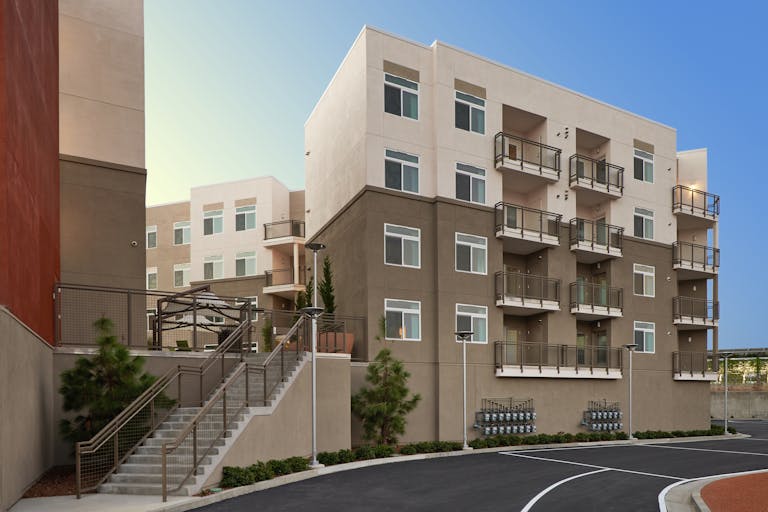 The Exchange at Gateway is an affordable multifamily housing development adjacent to the new El Monte Station, which was also constructed by KPRS.