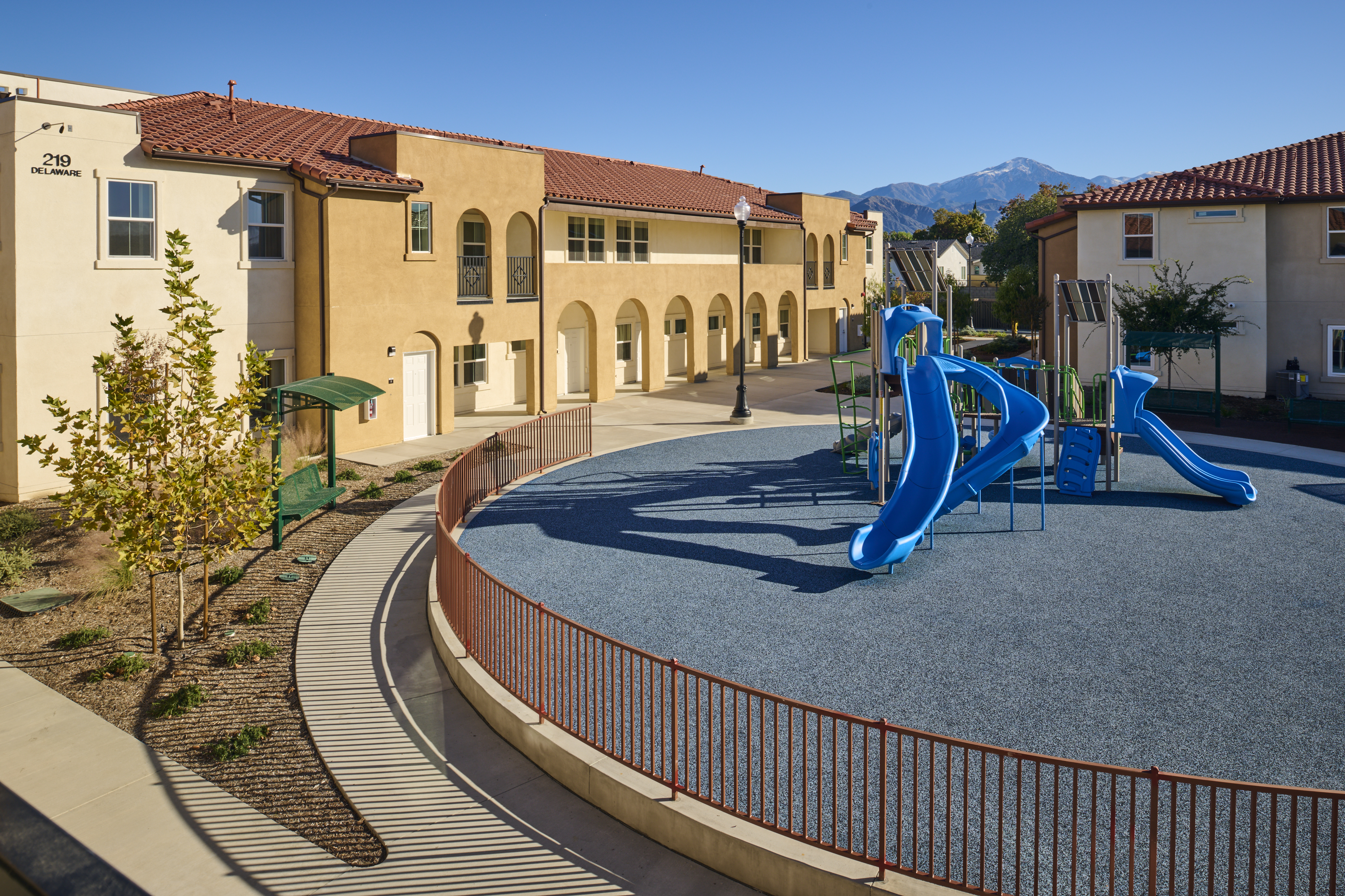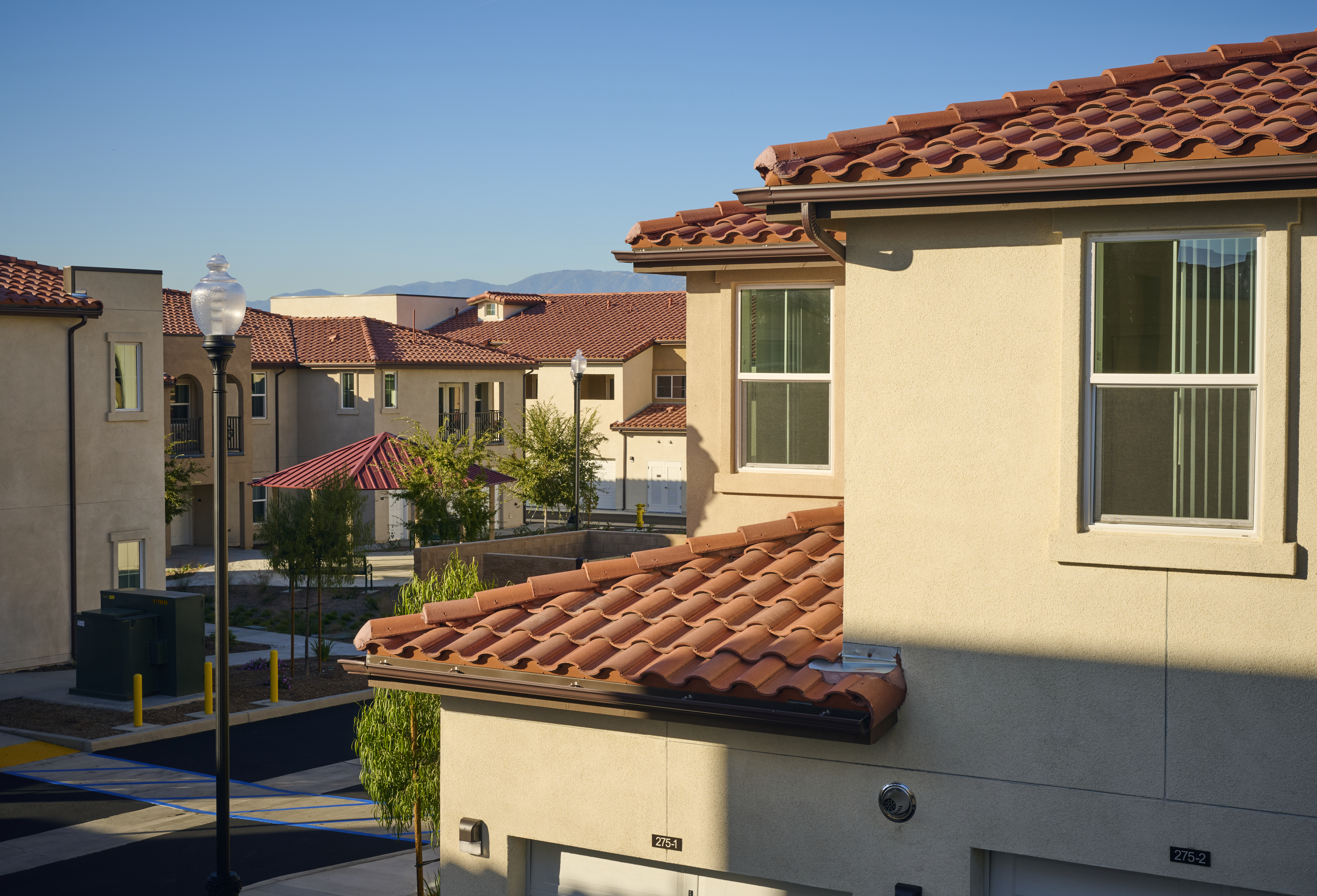 With clear views of the San Bernardino Mountains, Valencia Grove was constructed with 104 units across 16 buildings on the property in a modern mission-style design.