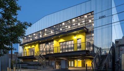 KPRS completed core and shell improvements to the original structures that included the full interior tenant improvements. Original materials like concrete block masonry, bow-truss roofs to steel frames and corrugated metal are highlighted throughout. The urban-style building features an open office design, with parking at the ground level.