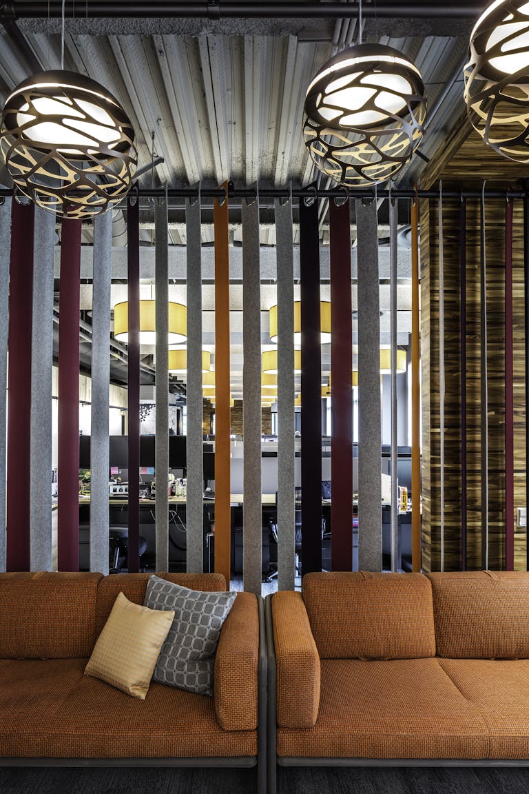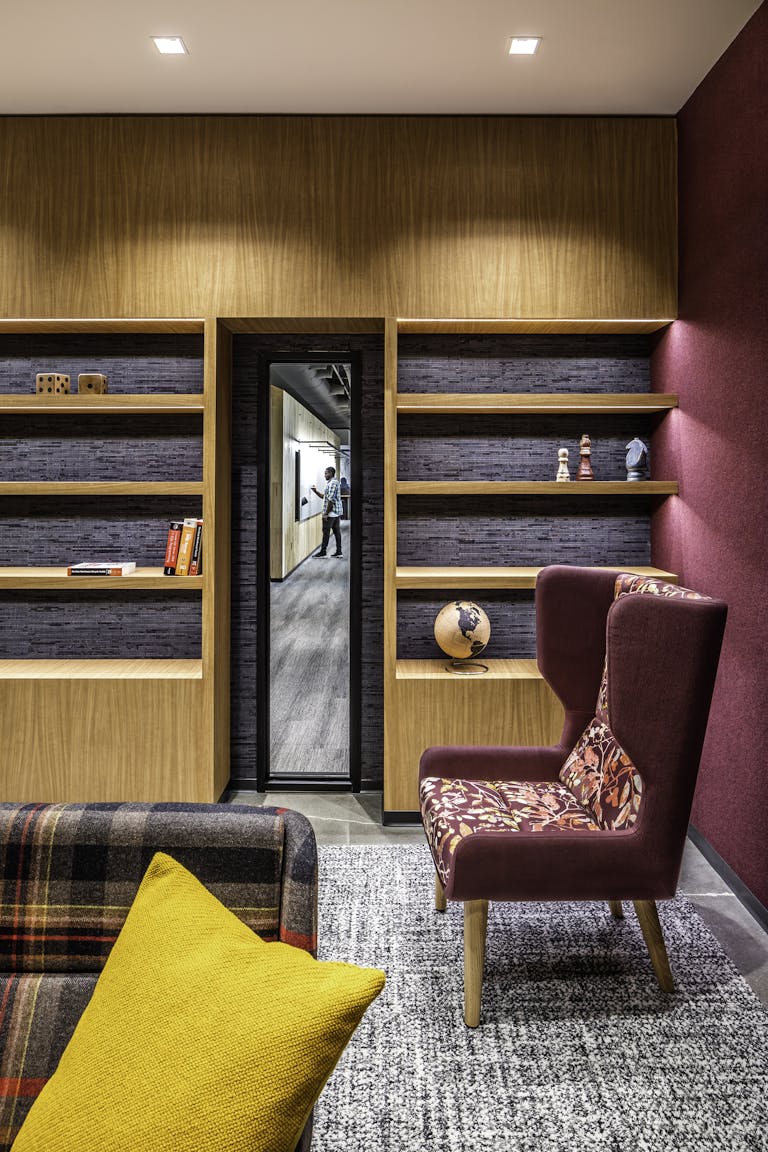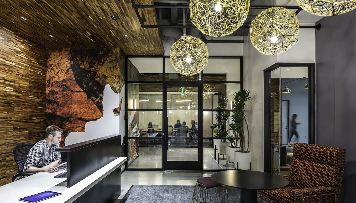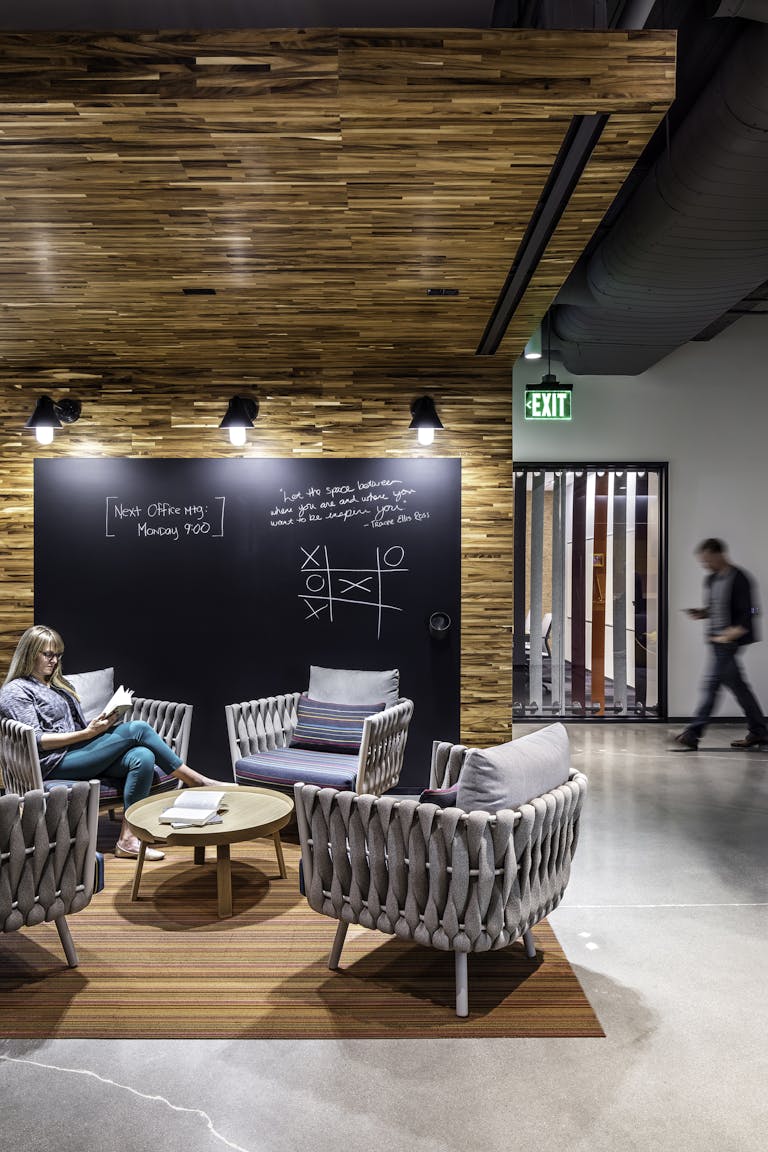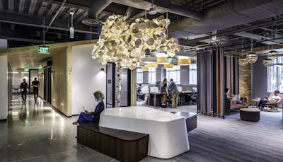 The mixture of textures, varied flooring and lighting installations create an inspiring and design-forward environment reflective of the worldwide software company’s aspirations and goals.