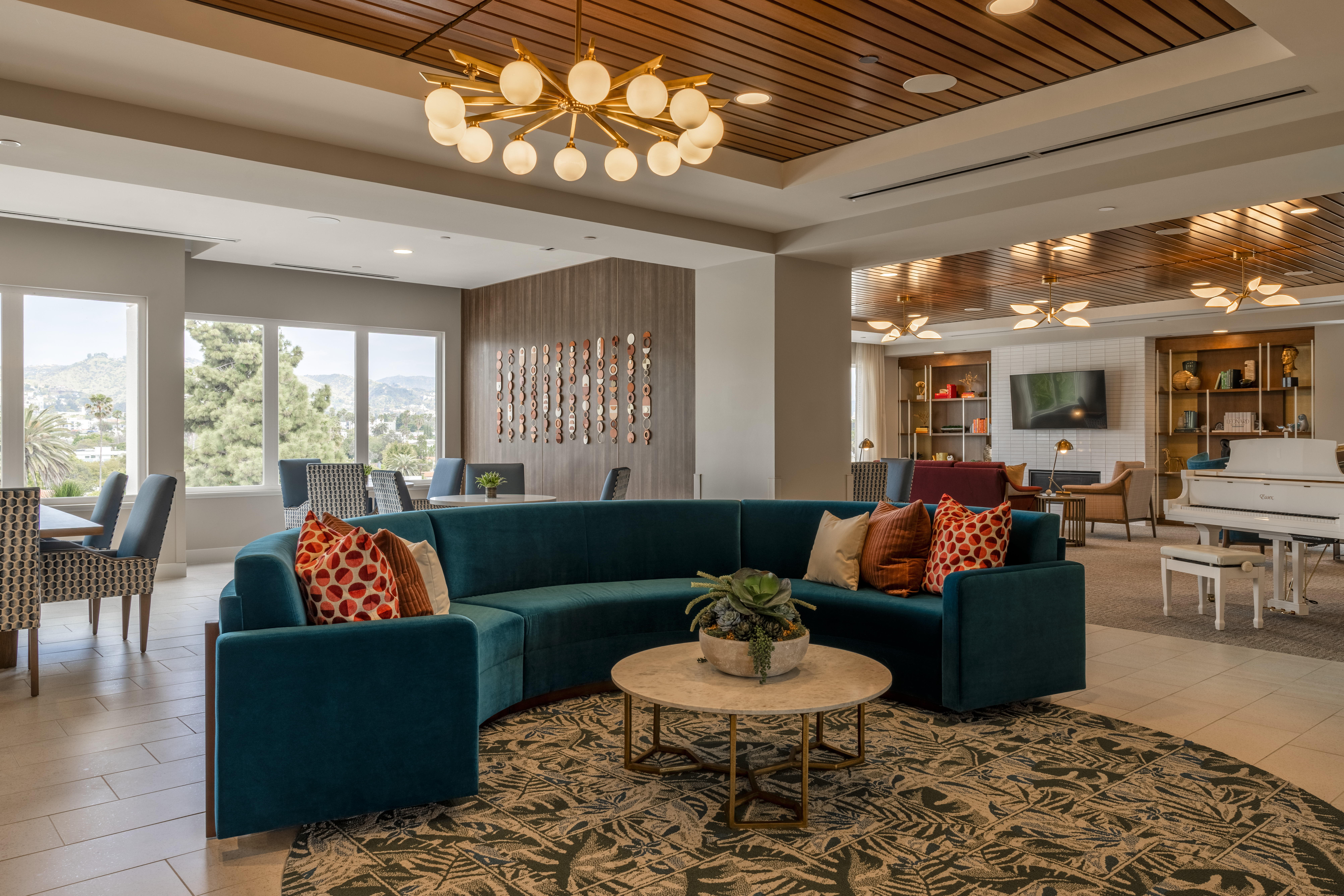 The Leonard on Beverly offers a luxury community with both independent and assisted living adjacent to Beverly Hills. Residents can enjoy gourmet meals offered in multiple dining venues, a theater room, as well as the rooftop terrace and landscaped outdoor spaces. The assisted living portion offers studio, one and two-bedroom options while memory support offers studio apartments.